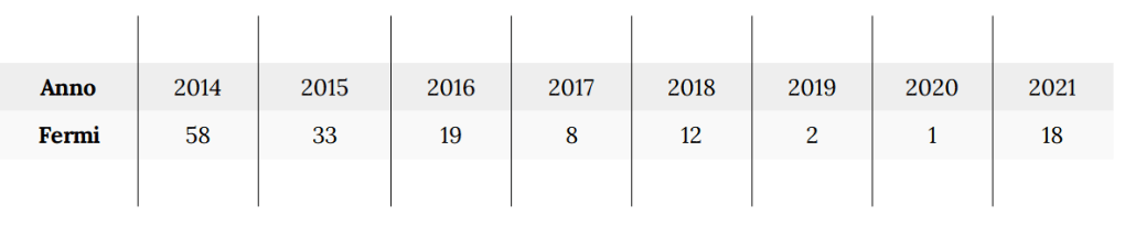 Il naufragio del settembre 2016, avvenuto a poca distanza dalla costa egiziana, ha causato il cambiamento più grande nella rotta egiziana: in maniera paragonabile alle reazioni europee per i naufragi del 3 ottobre 2013 e dell’aprile 2015, in Egitto la morte di circa 600 passeggeri cinque anni fa ha scatenato una caccia allo scafista. Nell’ottobre 2016 contro il traffico di migranti è stata introdotta una nuova legge, insieme all’intensificazione di operazioni di polizia. Anche se rappresenta un’esagerazione, il governo egiziano e Frontex rivendicano oggi che non c’è stata una partenza di un’imbarcazione dall’Egitto sin dal settembre del 2016. Infatti, il numero di fermi di cittadini egiziani effettuati in Italia che abbiamo riscontrato nella stampa sembrano confermare questo punto di svolta: